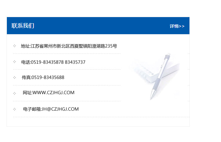 傳真:0519-83435688    郵編:213135    網址:WWW.czjhgj_com.shpaiya.com    電子郵箱:JH@czjhgj_com.shpaiya.com